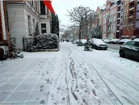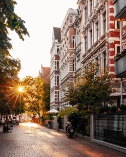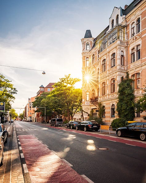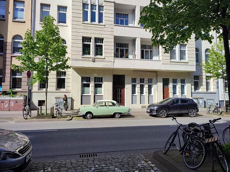 Como te decía al principio, yo le añado el aliño que mi humilde calle no tiene. Se lo sumo a estos edificios burgueses del XIX entre los que se alzan iglesias neogóticas, fachadas Art Nouveau - en alemán Jugendstil- y algún que otro trazo de la Bauhaus. A veces, con algo de suerte, escucho inglés en las terrazas de los bares cercanos. ¿Podría estar más cerca?